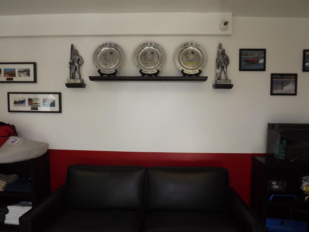 In the front office area they have a fully stocked supplyroom for a typical 100-hour service and a full selection of parts for trailerrepairs. They are a dealer for Lucas Oilproducts and Boat Bling cleaning supplies. The front offices are very clean, organized,and welcoming. Because Jim and Kyle areboating enthusiasts and have a love for ski racing, their lounge is adornedwith trophies and photos sharing their passion with the customer.