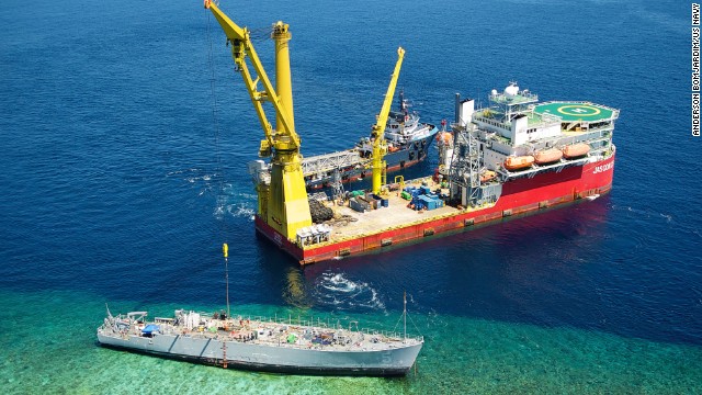 "The lifting of the first large hull section was a significant accomplishment. Each of these sections weigh about 250 tons," Capt. Mark Matthews, supervisor of the salvage operation, said in a U.S. Navy 7th Fleet blog post. The hull will be removed in four sections, the Navy said.