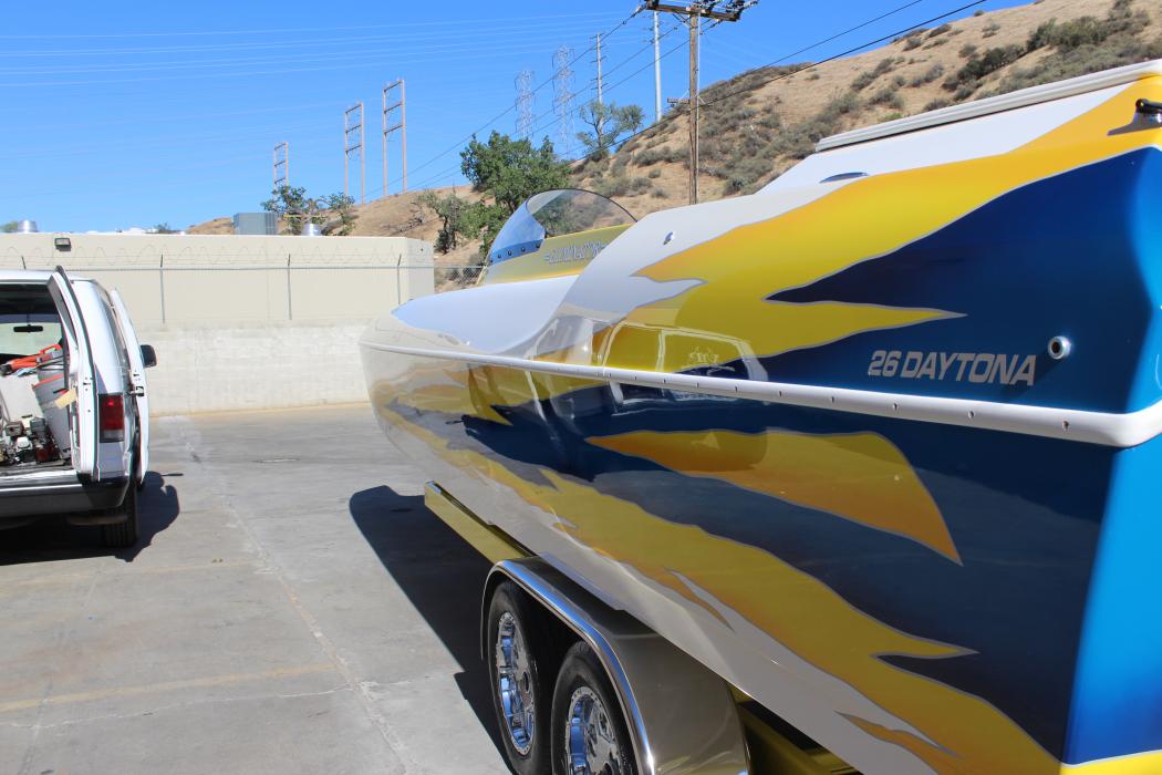 NRI stopped by Menace Marine today...they were putting the finishing touches on Eddie Billett's 26' Daytona and getting the boats/trucks detailed for the Havasu Boat Show this weekend. Here's a few pics.