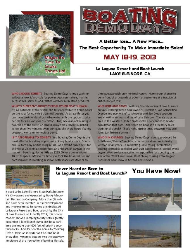 Re: Boating Demo Days - May 18-19th Lake Elsinore, Ca.