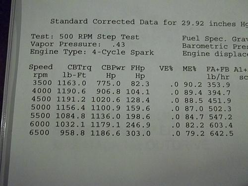 Tom at Pro Marine in Lake Havasu, AZ, along with Brian from Horsepower Connection ran the dyno on the engine. The dyno specs were amazing with 91 pump gas, 7# boost, the engine made over 1000 lbs./ft from 3000 to 6000, and it made 1108 hp at 6000, still climbing.