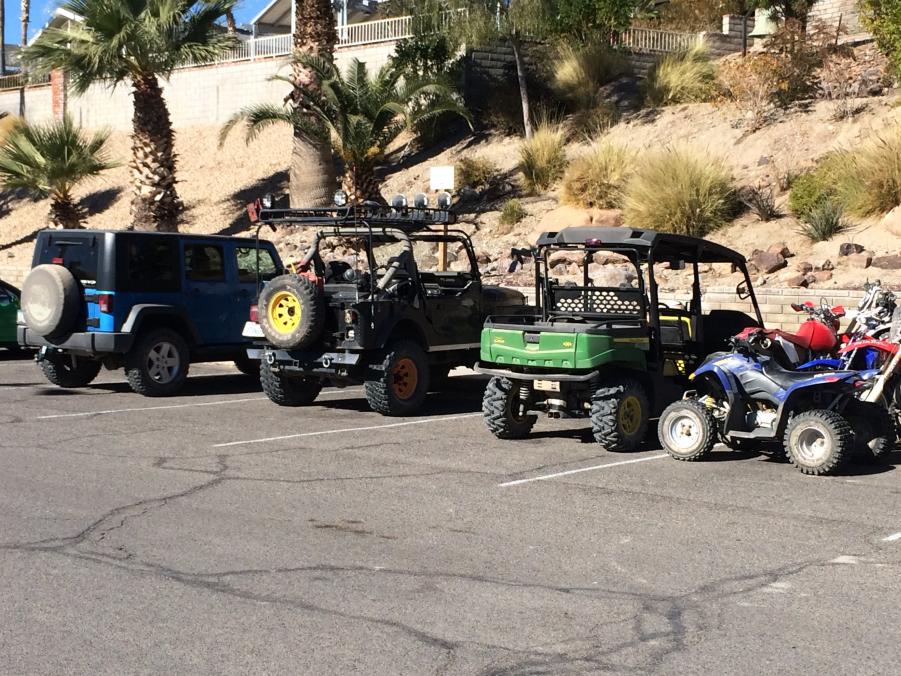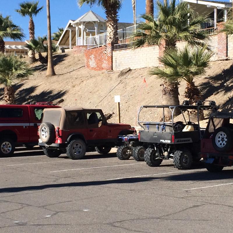 This morning was the 7th annual Havasu Palms to Havasu Landing off road event. This is a tradition here in the park and includes pretty much any off-road vehicle (Jeeps, Motorcycles, ATV's, UTV's, Sand Cars.....pretty much anything that you think can make it the ~20 miles each way. We celebrate the year with a breakfast at the Casino and have a nice opportunity to get caught up with neighbors that we may not have see for a while!