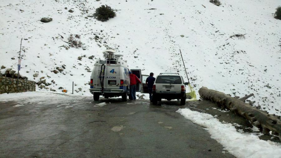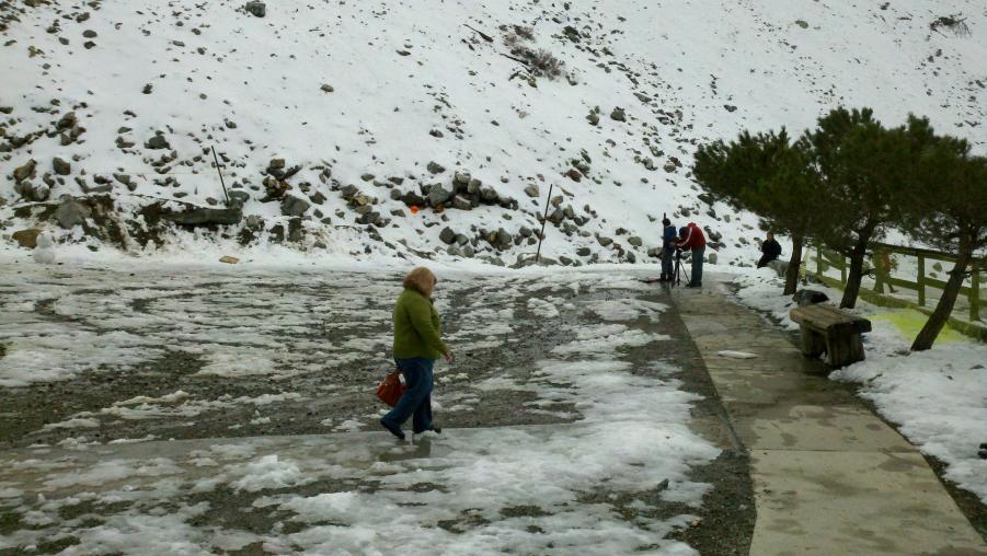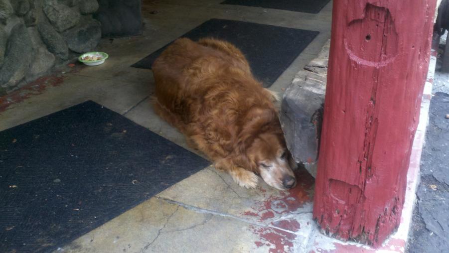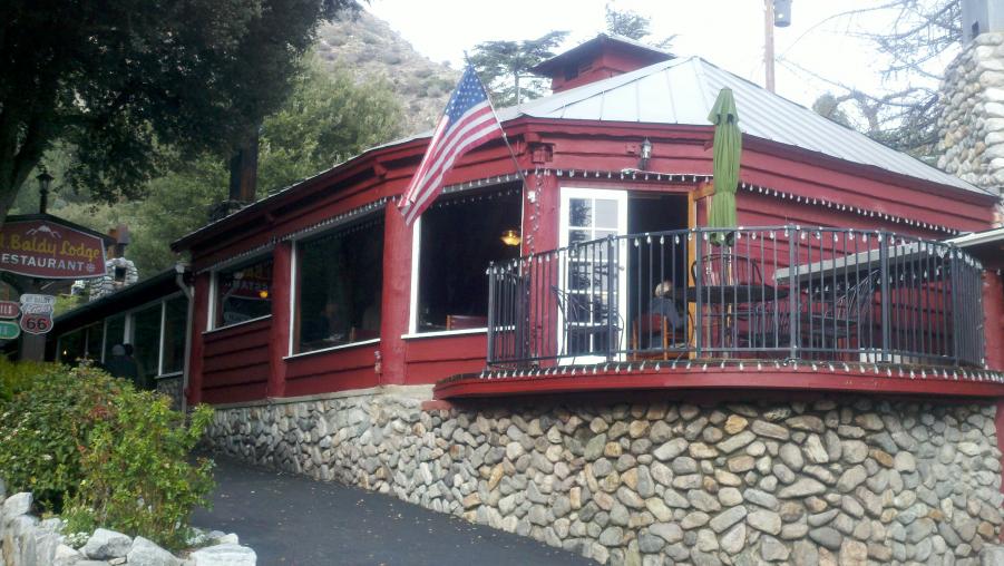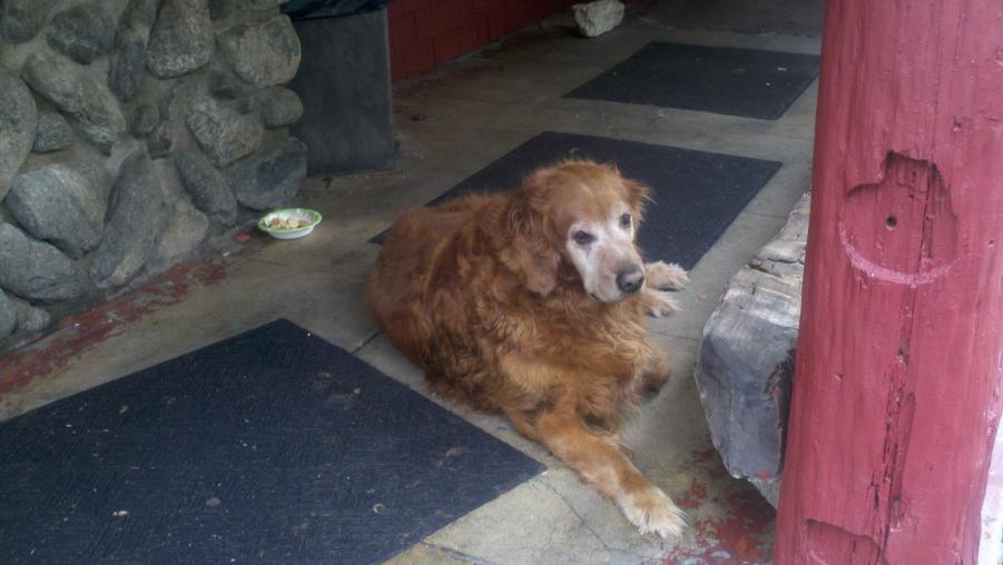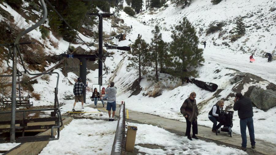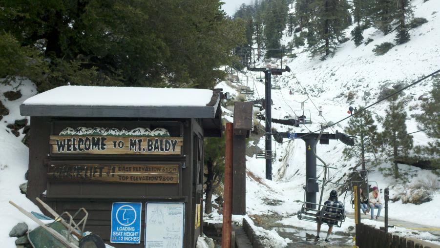 MMA and I went to check out Mt. Baldy and had lunch at the Mt. Baldy Lodge today. Mt. Baldy didn't really get much snow this last weekend but there were some kids making the best of it sledding down the ski area. NBC was there doing a report about the lack of snow this year and how it was affecting the local businesses. There was also this big ass dog out in front of the Lodge that was mistaken for a bear by a little girl.:biggrin: