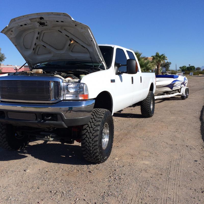 The next morning I fire the truck up, grab my boat out of storage and and head to Havasu. All is good. Later that day I'm driving to Interstate Batteries from the Islander and it happens again. So I stop at Orielly's and pick up a new sending unit, plug it in and boom, it happens again. So I called Ford in town and they said they couldn't touch it til Monday. I then called Tri-Tech Auto and they said to bring her in. The guys there were awesome BTW! I told them I was en-route to get batteries and they had Interstate deliver to their shop! .....So they plug it in and its showing a code for the cylinder head temp sending unit ( I didn't know one existed). So they replace it, clear the code and it seems fine. We go to back out of the garage for a test ride and boom. Temp gauge pegs and truck goes into limp mode. Plug it back in and we get a misfire code. #6 misfired 86 times and #10 showed only one. So they replace the coil on #6, clear the codes and the truck drove great all weekend! Last night I'm headed north on the 95 (just passing the airport) and it happens again! So I unplugged the head temp sending unit and made it all the way home with out going into limp mode and the temp gauge pegging hot.