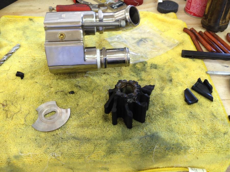 The stock plastic housing almost cracked in half causing a slow leak. I noticed the water in the bilge at pirates but didn't locate the source until today.