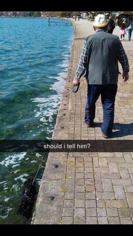 Maybe it's his "pet fish" that he's taking for a walk.
