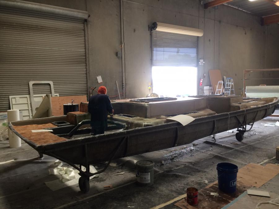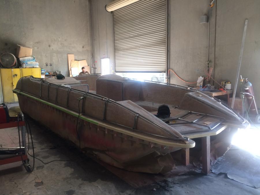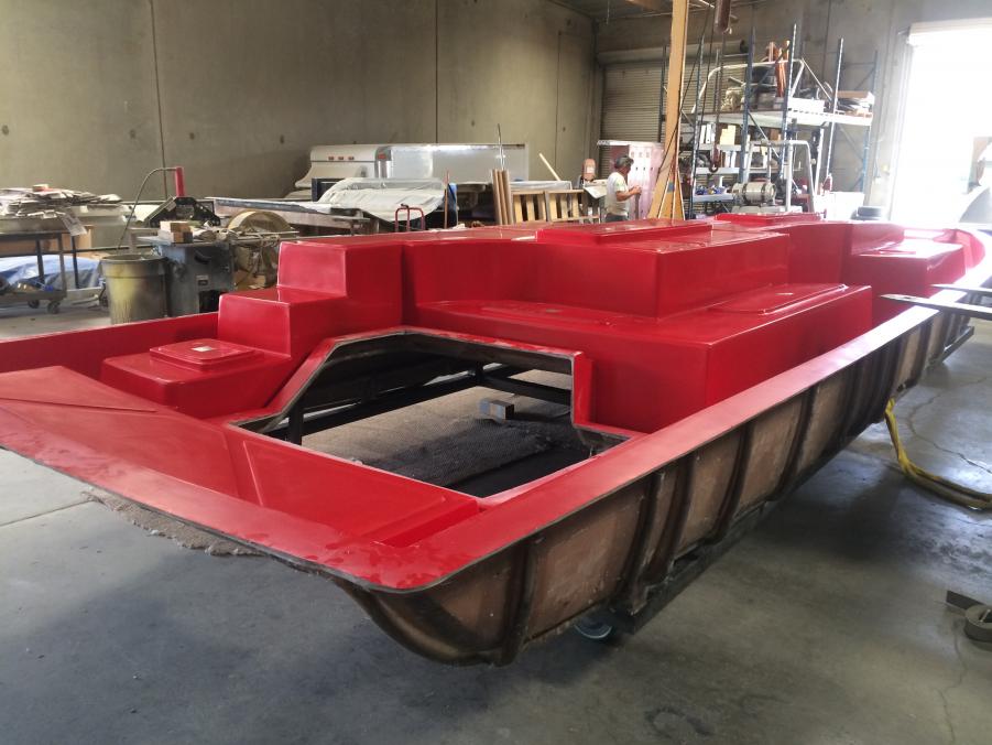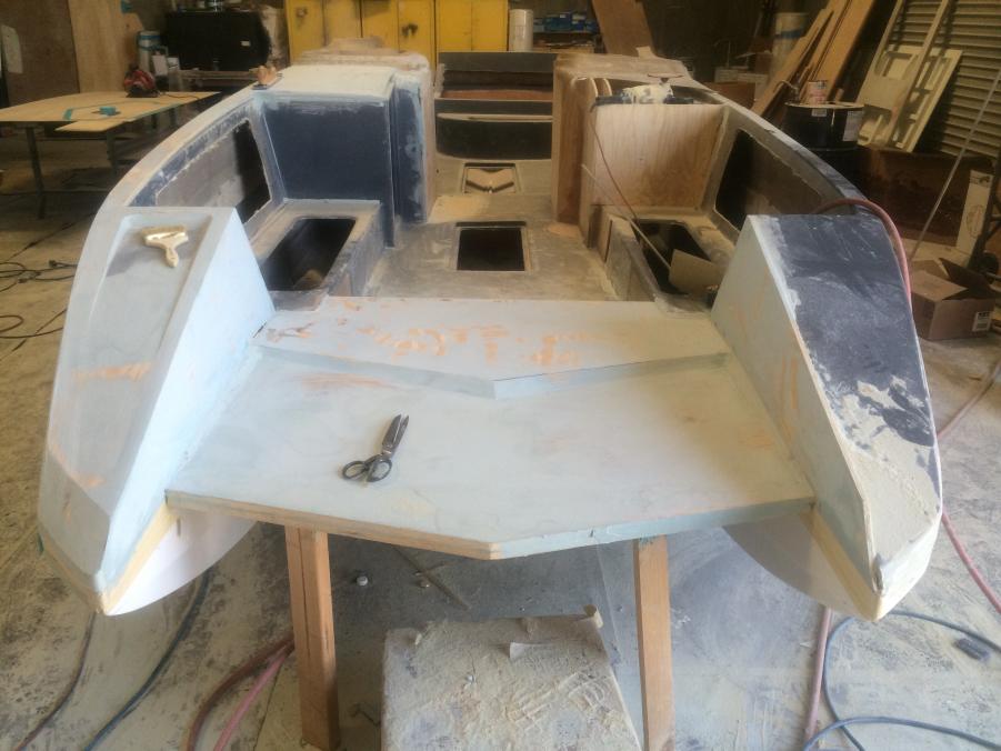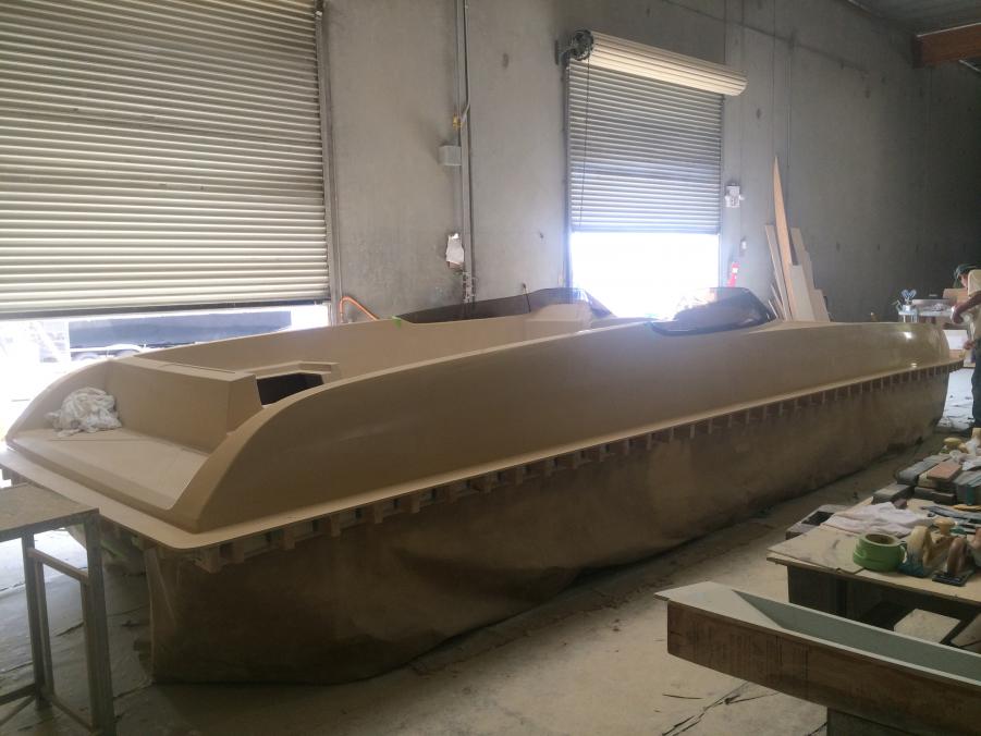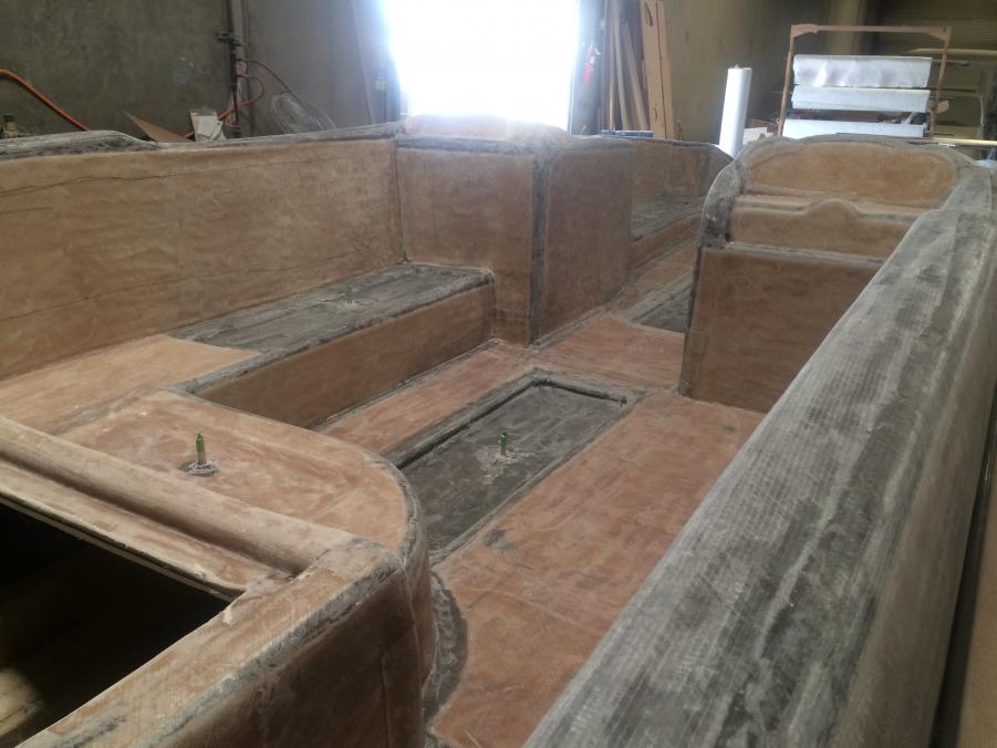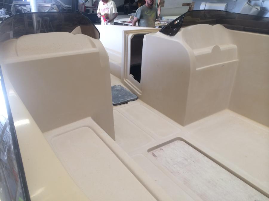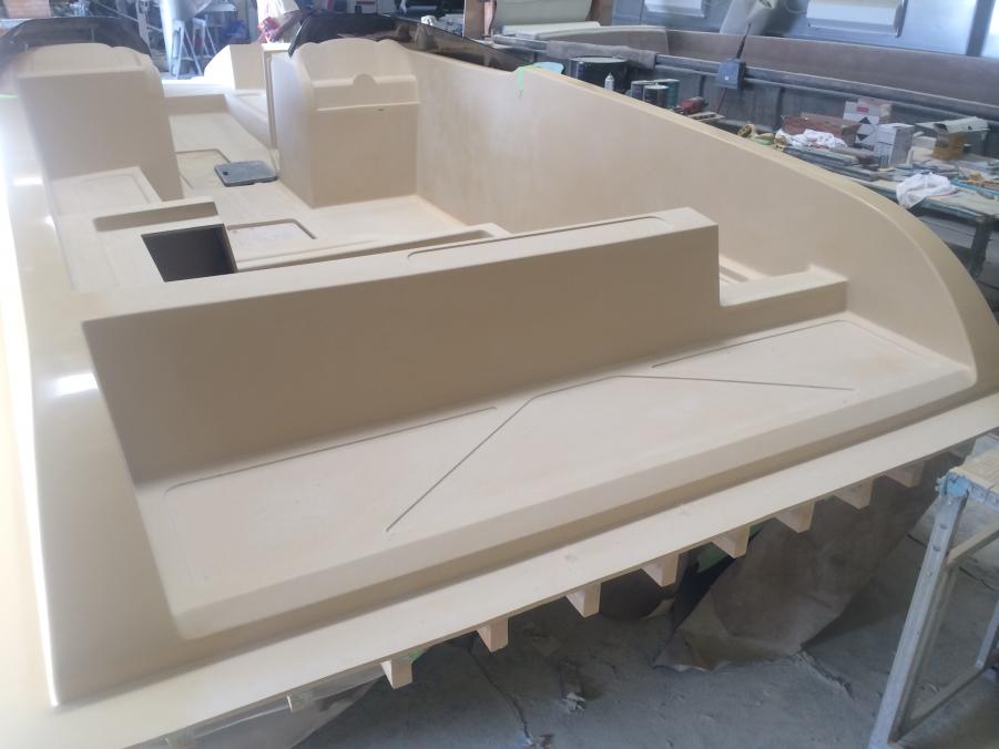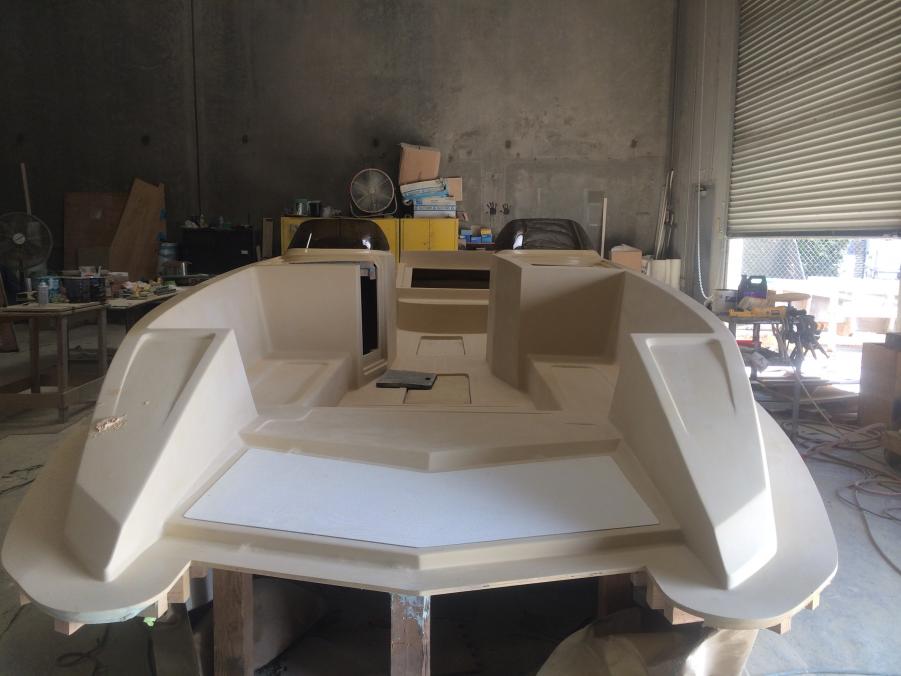 Just wanted to share whats been going on with Interceptor Custom Boats. Since we acquired the Eliminator Fun deck mold we have built two boats and have had a great response, but most everyone asks if we offer a twin helm version. My response was always not yet, so now we are in the tooling process of building a twin helm deck. Here are a few photos of the process. We actually used and modified the original deck since we like how open and roomy it was. The bottom running surface was not changed and only the shear line was raised as well as the transom to accommodate a higher X dimension. As we designed this boat we wanted to make sure it stayed a deck boat and kept the versatility as well as the open space. We will be offering this boat in a couple different configurations, 1) will have an L shaped seating design like the original so you do not loose any seating 2) will have two forward facing bucket seats 3) A full hatch version will also be available. The first two bottoms have already been built awaiting the new deck. The first one is slated to hit the water in September. We are also tooling a 25' version that will debut early next year. Sorry pics are not in order.