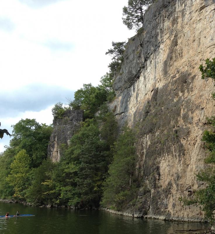 Here's how I describe the spring water at HA HA Tonka. When you swim down from the fence on the right pic to where the the spring meets the lake is probably 20-25'. Once you set foot in the water by the fence it's instantly cold, this is when you question what you have done to yourself so from there it's either crawl out(the same way you got there, which isn't fun or easy, a little mound of dirt(10') that is slippery with rocks and roots in it) or swim down the stream. Swimming is the easiest way. Now that you have decided to swim the short 20-25' this is the fun part. You lunge into the water and fully submerge yourself in the cold water and start swimming faster than Michael Phelps, somewhere along the way you start to lose feeling in your toes and than the torture is over once you enter the cove water you regain feeling in your toes and the rest is history. Some people keep doing it. Kids love it. Now I probably just ruined it for everyone that wants to try it. Oops.