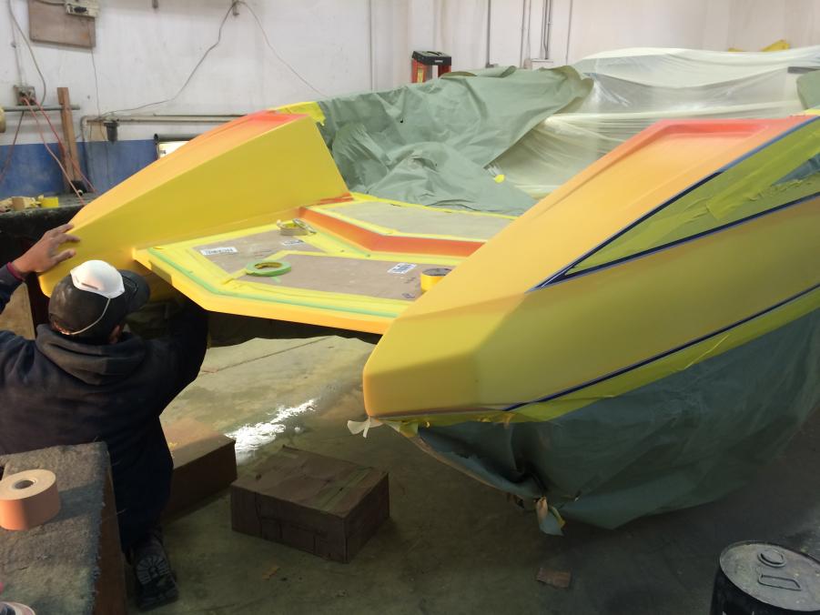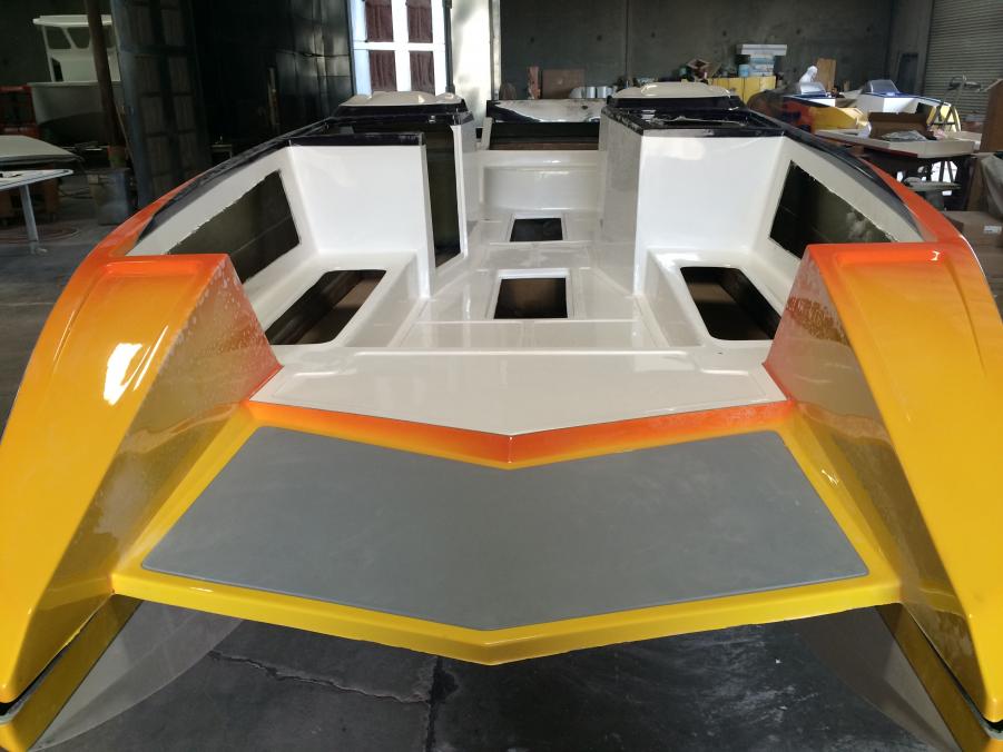 Just wanted to share another exciting build were doing for a customer. This is our new twin helm deck boat, it will have two buckets and a rear bench. Customer chose the Mercury Racing 520 package and a bunch of other cool options. We pulled it out of the mold on Saturday ond Monday we will start assembly so the deck is just sitting on the bottom in the photos.