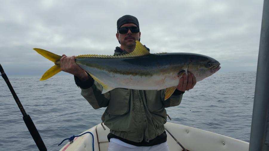 nice 1/2 scoop of great size bait and head out and to the 209 found 66.5 water most of the way to the 267 then as we headed down water cooled fast 64.2 to 65.1. found some untouched paddies no one home, over shot the 209 looking for a pocket for nothing water had more green to it. about a mile south of the 209 we found a barn door saw a flash and 3rd bait hits the water, i hear i am bit. 22 mins later the 30lbs yellowtail comes to gaff. we watch 4 other 15 lbers chase her up after that nothing would eat. started the look back up the line and found some paddies but they where dry.