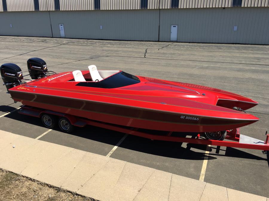 Labbed Mercury 34x15 humpback Cleavers. 1995 Douglas Marine trailer. New interior. SmartCraft gauges, 2 covers, race hatch, trim on throttles, gps speedometer. 118 mph.