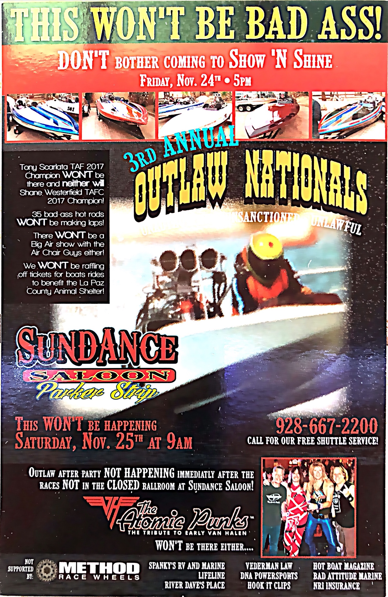 Once again it’s time for that event that won’t be happening again this year, for the third year in a row. So if you’re anywhere near Parker, make sure you don’t show up, because no one will be at the Sundance November 25th beginning at 9am to not see some of the baddest boats anywhere.