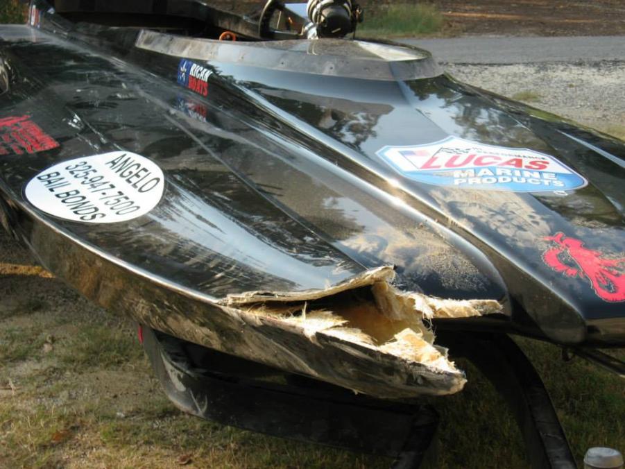 Labor day they were coming home from Wheatland and like 25 miles from their house had a bad blow out on a rear tire of the truck, so violent it broke the axle when it hit the wall, then swung the boat around so hard the trailer bent and the boat got a little tore up. Tech inspected the capsule and gave it back the same day it happened. Maybe because it was the first round of the day. Not sure.