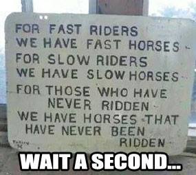 Sign posted at the stables?