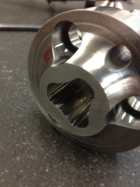 Cam drive for the pump. Shaft socket is .750 major, .500 minor triangulated full radius profile made from 15-5PH h950 condition. Should be plenty strong.