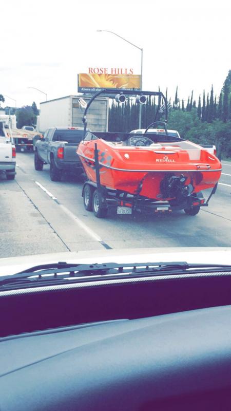 Yes, and Yes. More importantly, pulling a 1965 Stevens drag hydro, with it's original Dave Zeuschel 398" blown/injected Chrysler hemi. Not a "cackle boat", but a for real blown gas hydro from 1965,still in "as raced" tune, competed in the N.D.B.A. during '65 to '66,by then owner/driver Bill Dirksing. It's sitting on it's original Vance trailer that was customized by my Dad about '68 with wrap-around upholstered step pads all around. Not just any old boat, but a still running beautiful piece of history. Too Much! After all, this IS Hot Boat, isn't it?