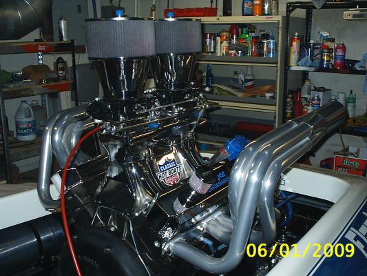 Has a 509 in it with approx. 800hp top speed 92.7 gps with 7 boats racing side by side in circles for 5 miles.