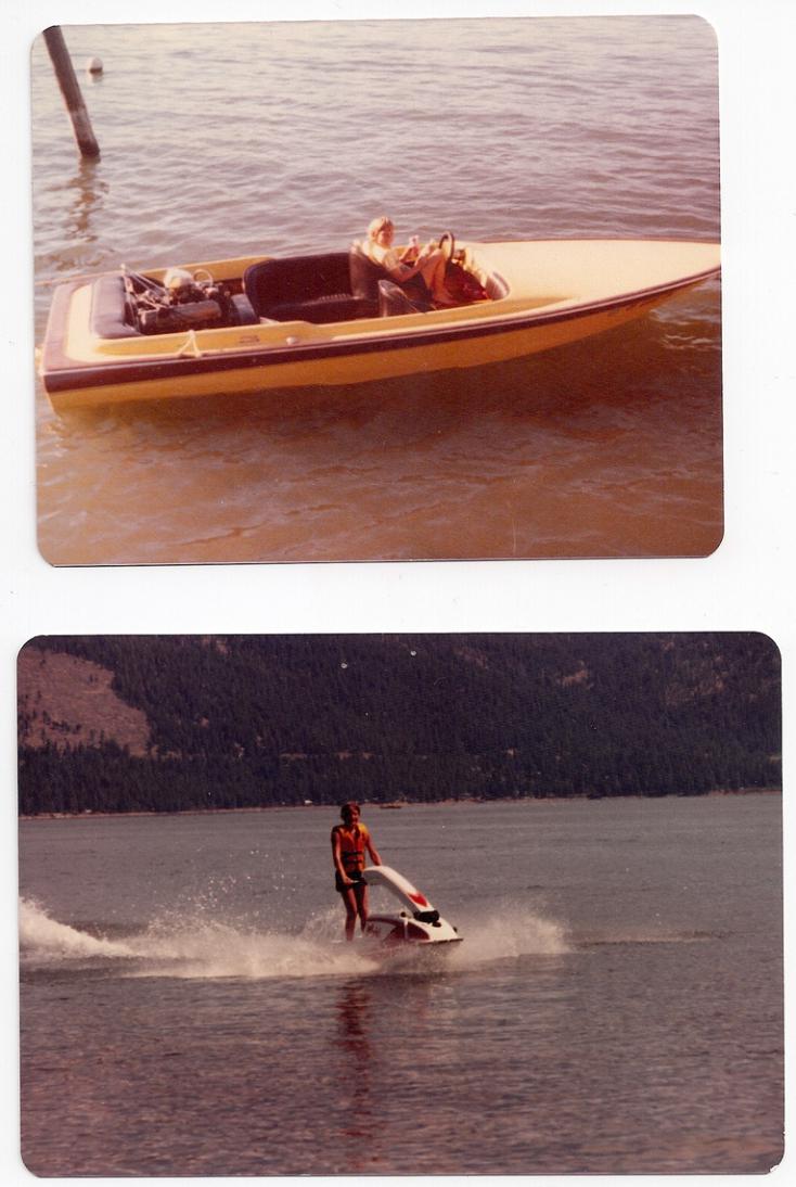 Hanging in the boat tied to our dock in Parker probably around 75/76. the jet ski pic was up at Lake Almanor: