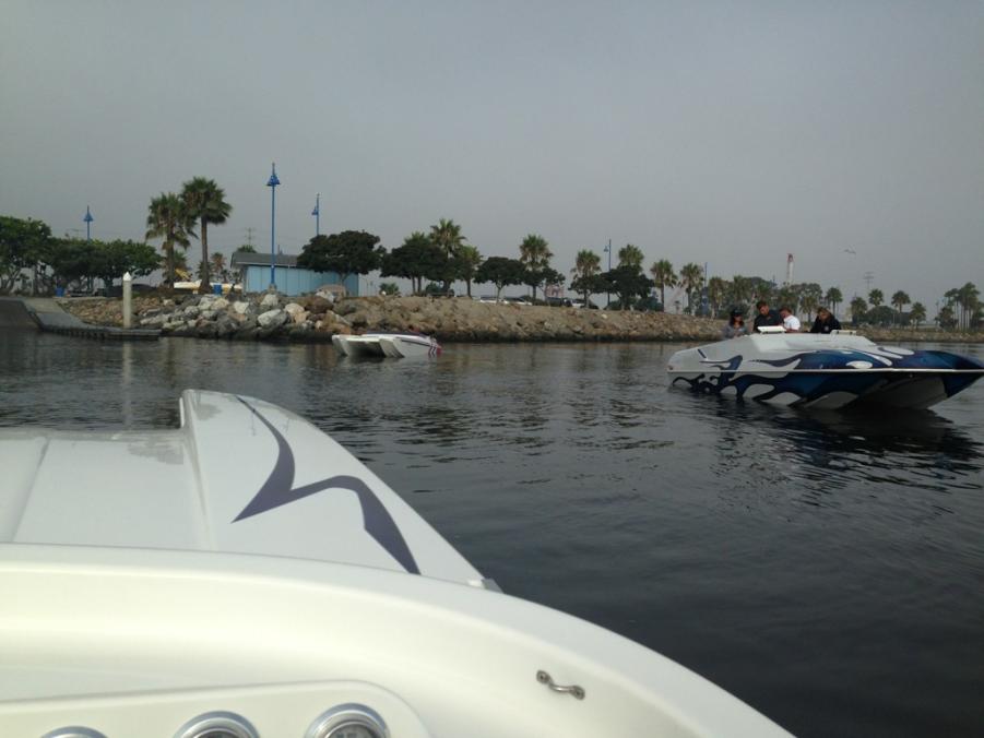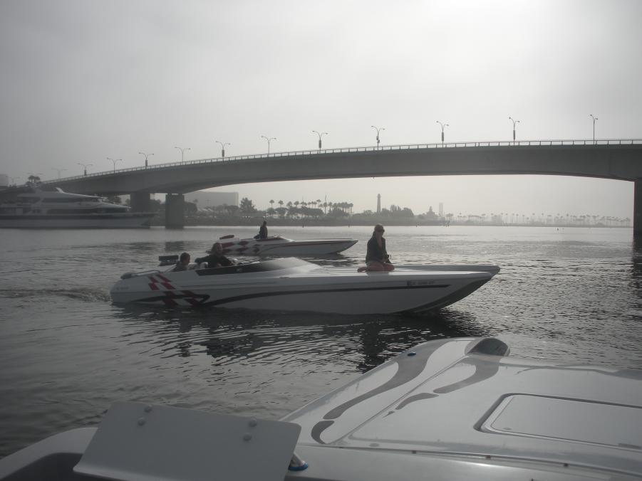 This is Wendi writing under WMC: A Saturday meet and greet at 8:00 am at the Queen Mary for a ride to Catalina dubbed the "Cats to Catalina". 4 boats and 18 people. My first time ever to Catalina and in a 24' cat. The ride there was not bad according to the driver and passengers. I was a bit scared. He averaged 60 mph. We stopped to watch a pod of over 100 dolphins which was the coolest thing ever. The water was so blue. It's a kind of eery feeling when you don't see land anywhere. Finally up ahead you can see the Island through the clouds. The island was beautiful. Clear blue skies and clear blue water. I saw a bright orange fish that you would see in the Carribean. The boardwalk was really neat. All the cute shops and bars. We ate at Antionio's. Might I recommend the fish tacos which were amazing and the rum matai (I believe), It comes in a mason jar. Oh so good!! Went to the local "dive bar", named the Blue Marlin and did a shot of fireball. So needless to say I was feeling pretty good when we left. The ride back was intense. The swells were bigger, closer and the added wind factor made it worse. We were getting air like crazy, hitting hard. We were going 30-40 mph, the chop was crazy. Today my entire body is sore. But I must say I felt very safe with Rob at the helm and truly enjoyed the day. We drove through the Los Angeles Harbor and saw the big freight rigs and the Iowa ship up close and personal. The day ended around 5 pm. Thanks Rob and Dustin for inviting us. We had a great time.Attachment 15077Attachment 15078Attachment 15079Attachment 15080Attachment 15081Attachment 15082Attachment 15083Attachment 15084Attachment 15085Attachment 15086Attachment 15087Attachment 15088Attachment 15089Attachment 15090Attachment 15091Attachment 15092