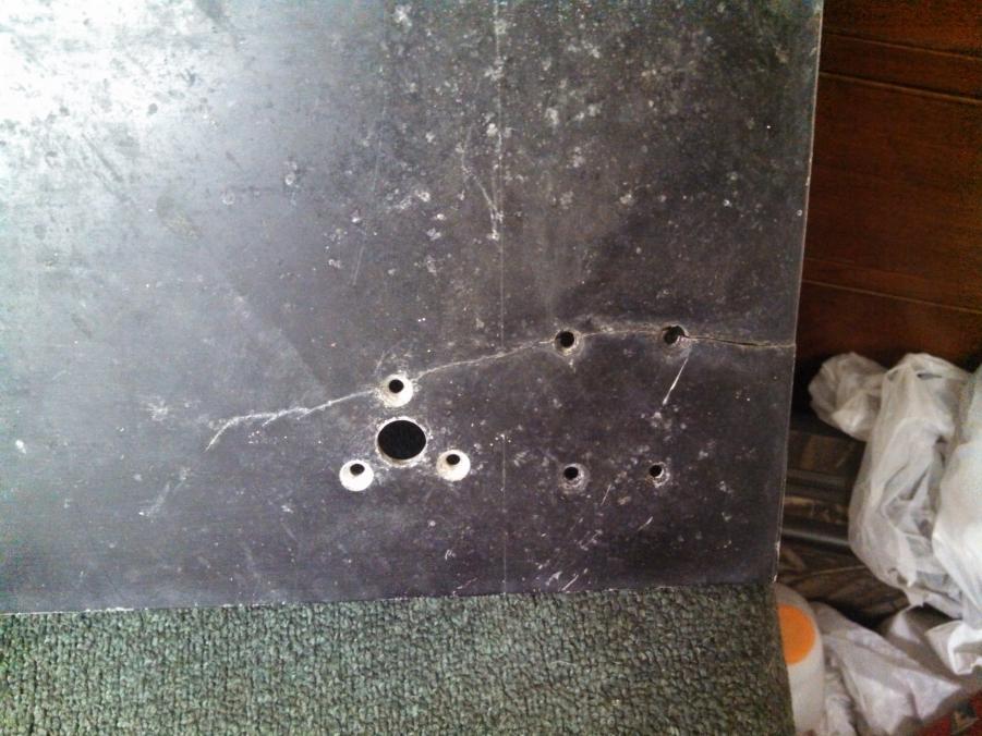 Here is a picture of the crack itself. You can see where it ran along the pressure line from the turnbuckle pad and then started heading to the front edge. This is the bottom of the plate.