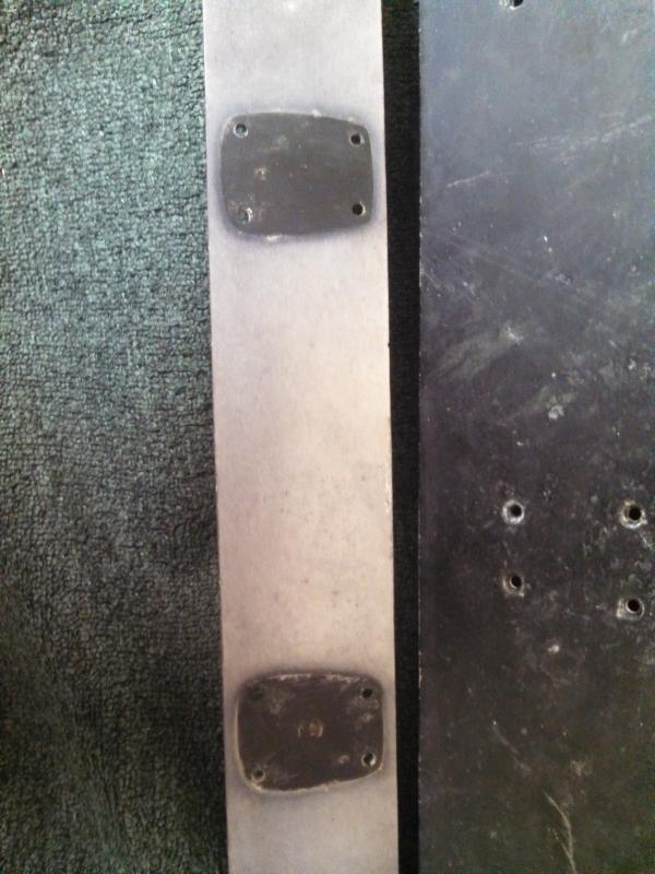 They were on the boat when I bought it. We believe the boat was a K boat or a PS boat before but nobody remembers the fisherman from the Texas coast that used to race it. The 1" transom rod and the cav setup seemed to be done right back for back in the day. To be honest, I just assumed they were 6061 5 gauge but have since been told they were probably 3/16th. The screws were 3/16 stainless fine thread bevel head with lock nuts.