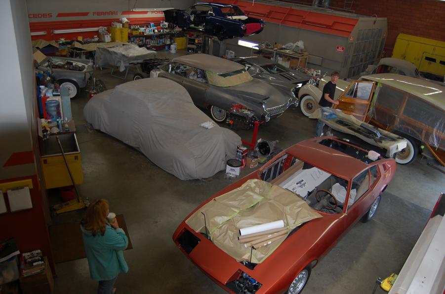 Used to have nothing but older Ferraris in it, now mostly stuff for Pebble Beach Concours and of course an errant Mustang for his grandson (my kid).