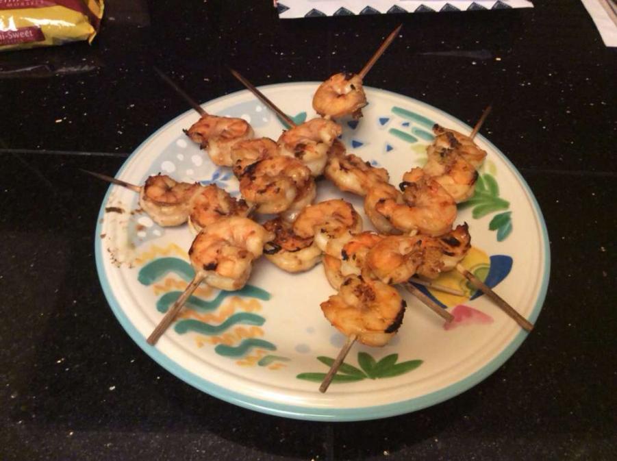 Fresh shrimp, marinated in teriyaki and bbq'd.. :D