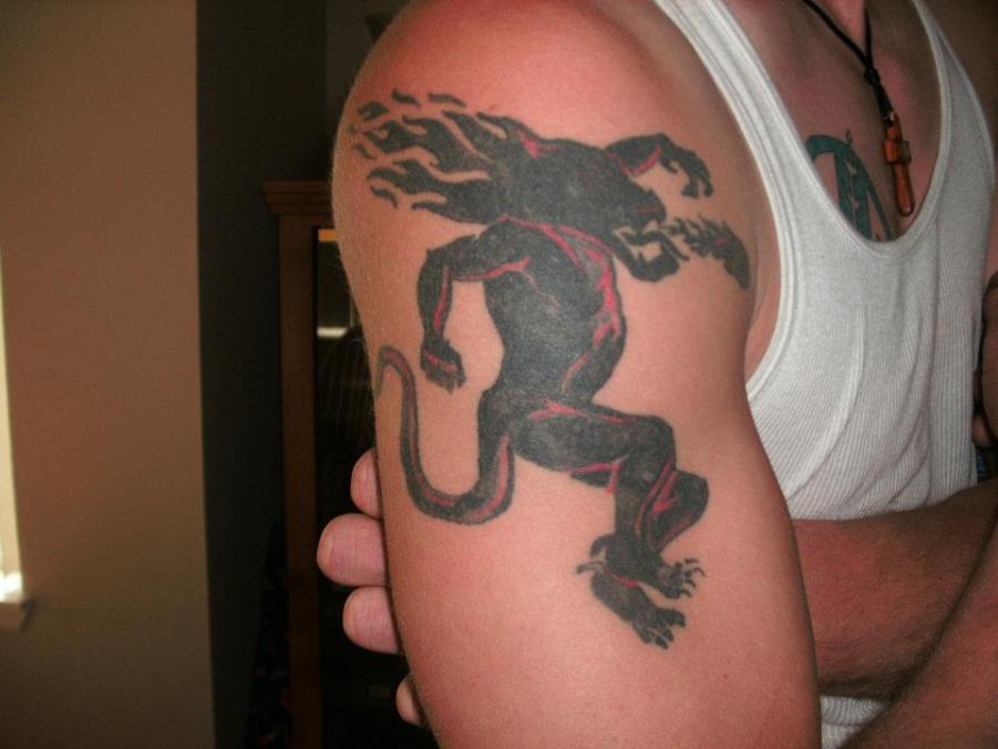 Quote: Originally Posted by Wendi HB I found your twin :buddies: Pretty cool. I've seen that before. Opposite arm. He has a lot of red, which is cool. And I did not do the flames coming off flames on his head or the flames coming out of his mouth. So I think mine looks cleaner and less congested. :D