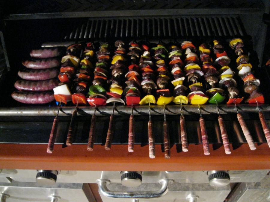 Good eye, noticing the cut prop shaft used to suspend the skewers.