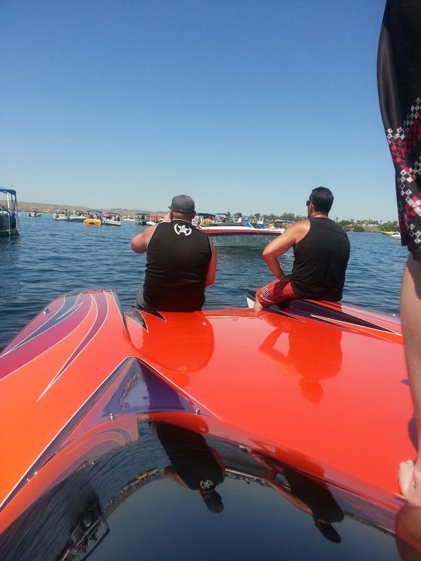 Ok now I know who you guys are. The colors look great. When you showed me the orange deck I didn't see the other colors. Very nice boat!! Good meeting you guys.