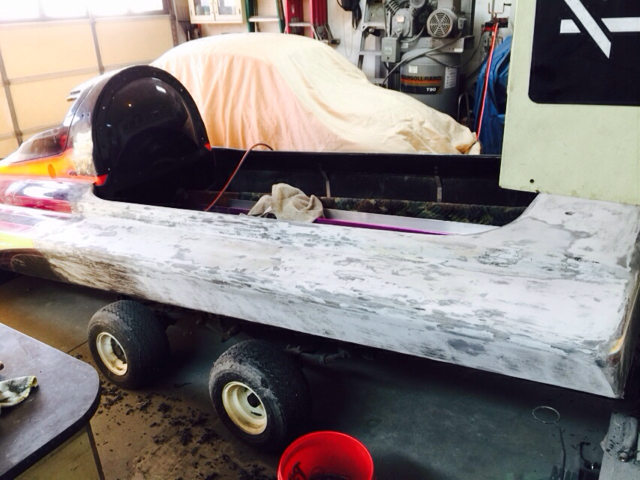 We got the boat to fit in my dads garage so he can paint it