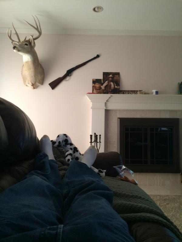 Why is there a dead animal on your wall and is that the gun used to kill it? Don't get me wrong, I'm all about hunting for food, but it's a tad cruel to hang it next to the thing that ended it's delicious life :D