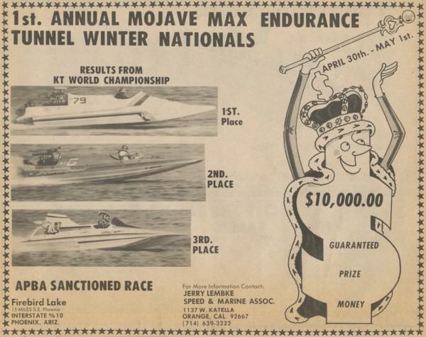 There were 2 boats during that period that ran right at 160. Barry's Banzai, and Rudy Ramos' Golden Thing. Both powered by Keith Black hemis.