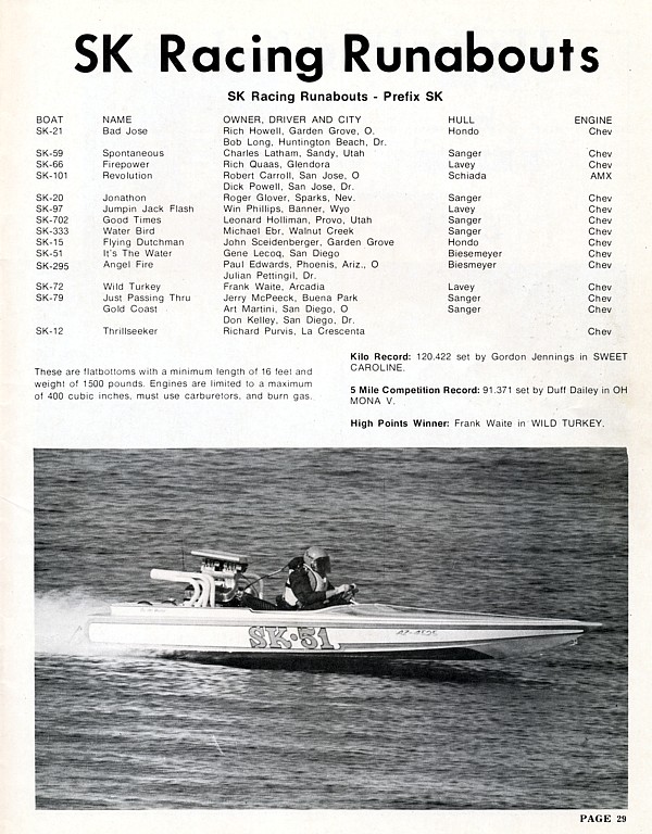 There were a lot of different types of hulls in all the sprint classes back in the early 70's. SK was short for ski (boat) and they were originally limited to 400 inches. They did allow for a little bit bigger engines just before the class disappeared around 1980.