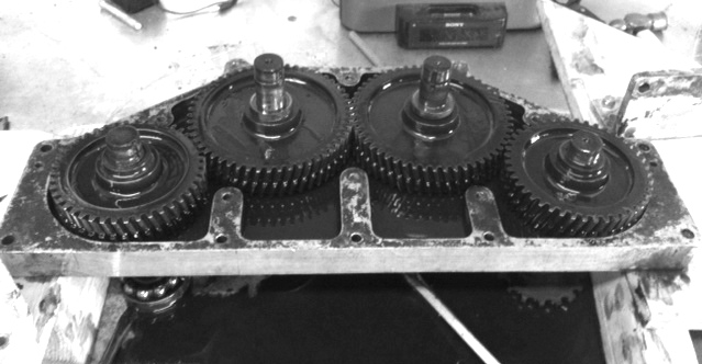 Today its one input direct to a output, plus one idler to an output, making the outputs turn in opposite directions.