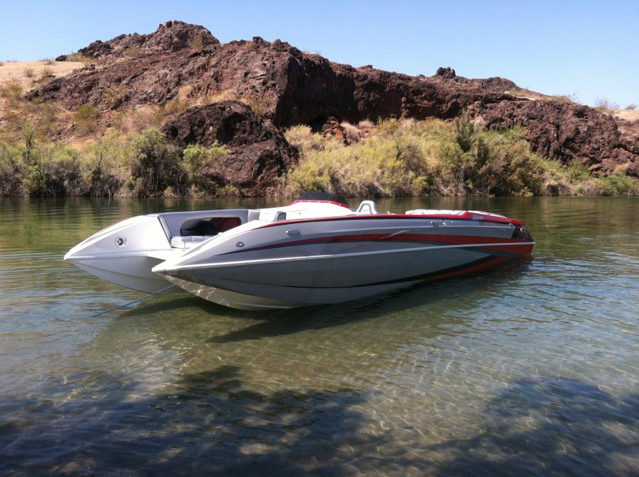 We ended up testing in Lake Havasu and everything went well...... the boat ran 78 mph on gps. It came on plane within a couple of seconds and accelerated quickly. We had plenty of mid range power and cruised easily at 55 mph and handling was awesome. As I had expected there were no rattles or vibrations and it felt very solid, I was extremely pleased. If anyone is interested in a demo, let me know!!!
