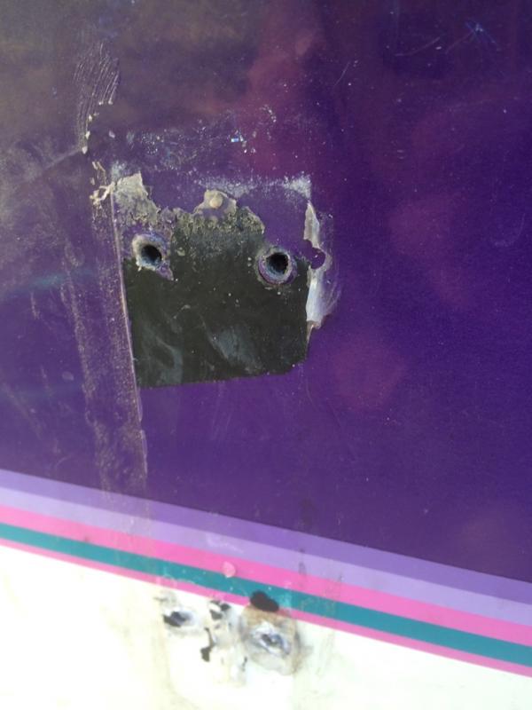 Here are holes that need to be fixed from the swim step brackets