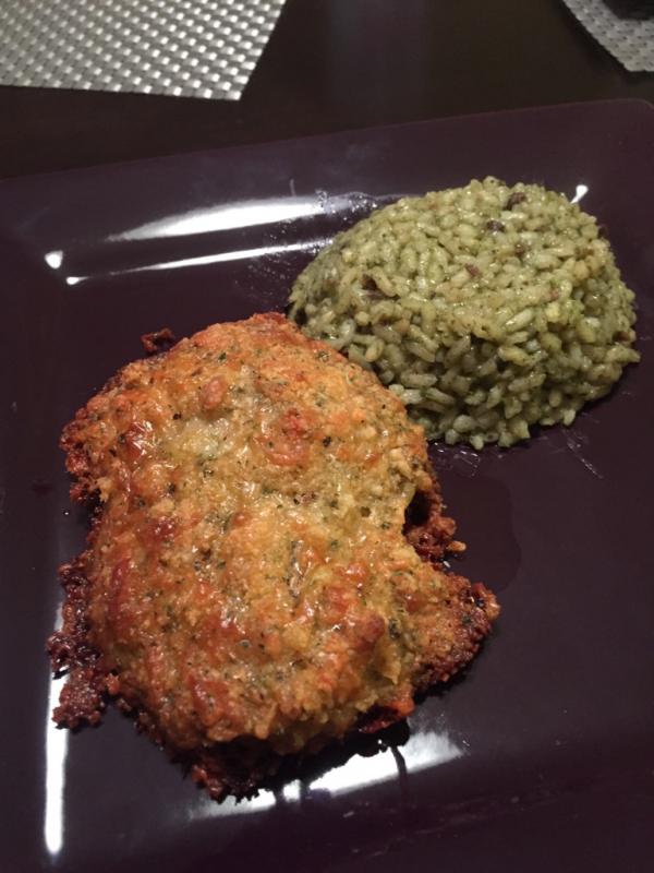 Parmesan crusted chicken and florentine risotto, it's what's for dinner :D