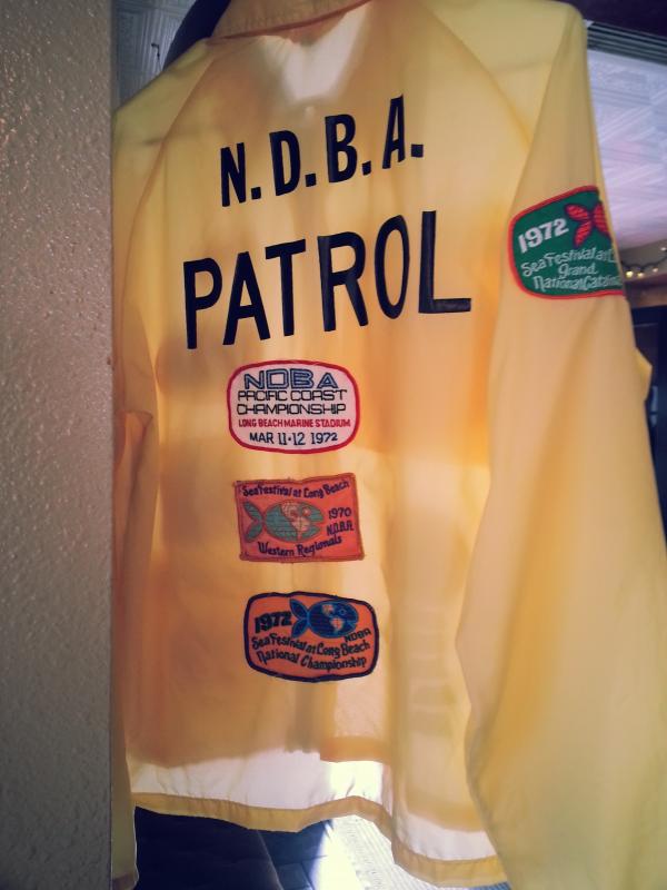 This jacket, along with a bunch of cool old water ski stuff, is hanging up in this really good breakfast spot called The Crooked Duck here in Long Beach.