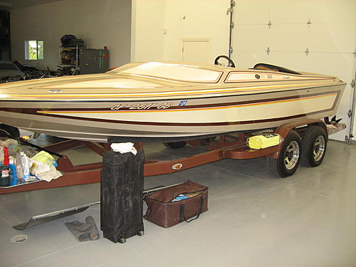 This transaction happend over the weekend of RCL's birthday and a bunch of us were up there and took the tour of Tim's garage. This brown one has a floor in it and when Sammons was standing in the boat, the gunnel hit him about waist high.....