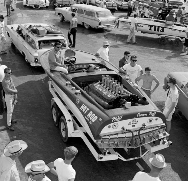 There are a couple give things that make me say its at SS. Straight over the top of the Ford wagon is Rudy's U6 Phffft with a large Rayson script on the side. Rudy usually drove that boat. He used it to win the Clear Lake enduro in 1964 even though he had the Allison boat, he used the U6 boat in that race. The 2 very seldom if ever raced in the same race except SS 500. 1964 Fowler drove it to 2nd place behind the Allison, ahead of the 1963 winner #69 Sanger of Wells Wilson.