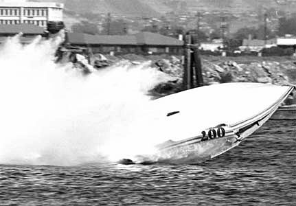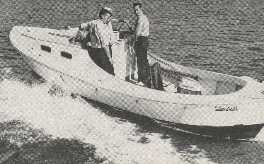 I recall being told that the 'inboard-outboard' shown here (I think called a dory) was done to keep the engine away from 'following-seas'. The waves were faster than the boats and would 'push' the boat and sometimes overwhelm and kill the air that the engine needed.
