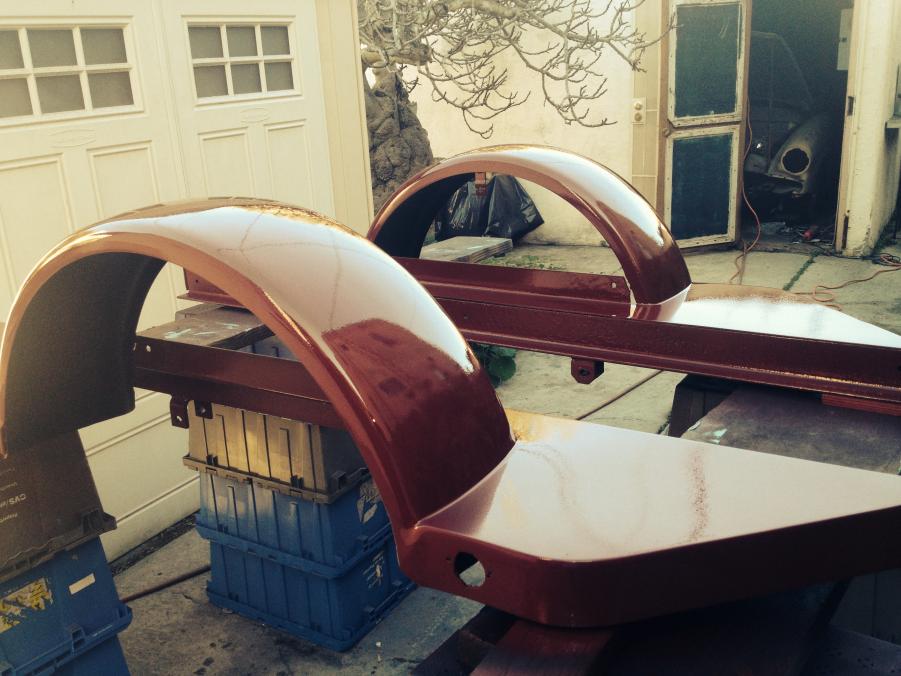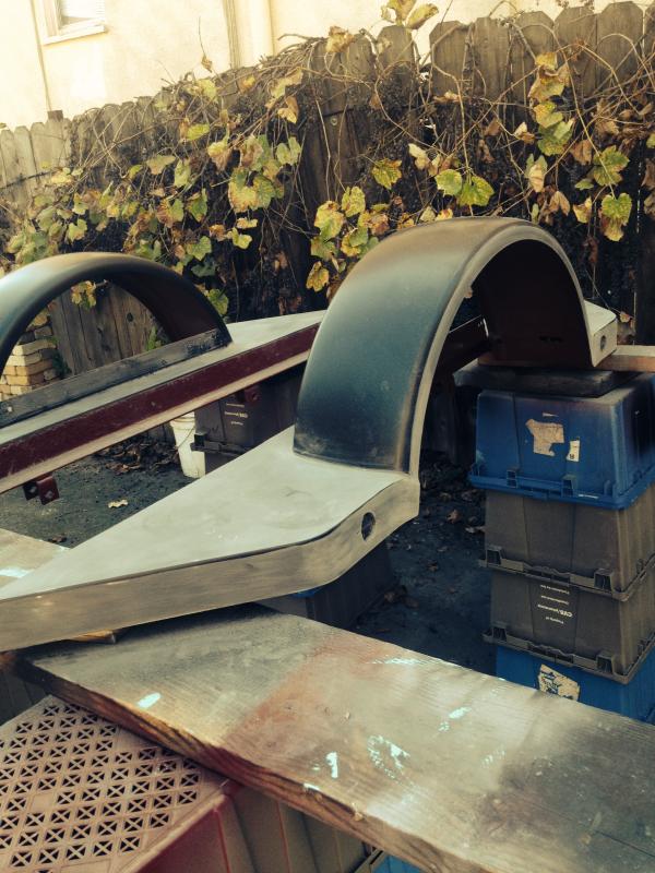 Attachment 33268Attachment 33269 top side of fenders i block sanded the first coat of primer i knew i had minor spots bad weather anyways than i filled all the imperfections and primed the top again , needs to be blocked out and painted ..