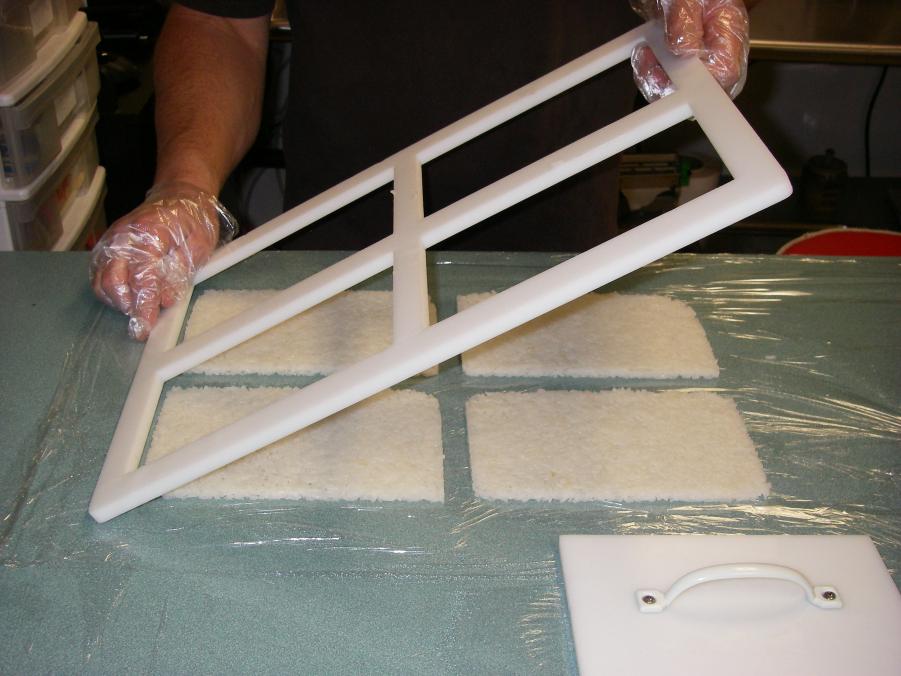 So, dump your cooked rice into a wooden or plastic bowl, let cool so it's still very warm but, not hot. Pour in vinegar and mix in. Don't mix too much or you will turn the rice into what's called moshi or, gooey rice. Oh yeah, having one of my patented pend SUSHIFRAMES helps you roll, easier, 4Xs faster, better, cleaner, safer...$29.99+shipping....It's a must!!