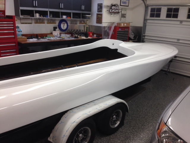 Well folks here she is straight from the body shop last night. I really like the boat being all white, can't decide if I'll put any stripes on it or just throw her numbers back on it and call it good? We'll see.