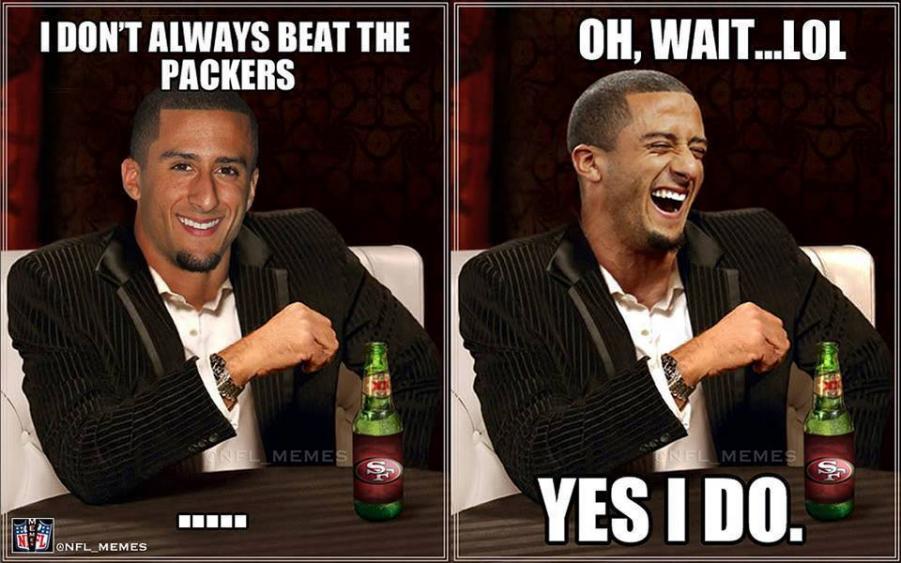 Green Bay fan standing at a busy intersection holding a Niners fan saying "I lost a bet" :hilarious: