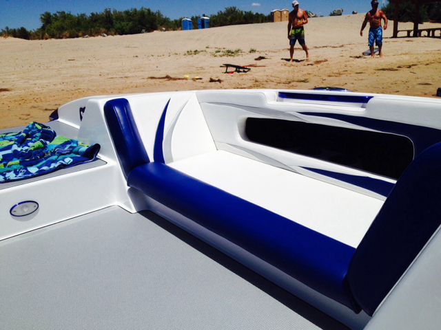 Interior layout has tons of room and storage. The bucket seats hold us in snug and the seats are low enough to keep my 2 year old from climbing out of the boat. There's no carpet to worry about, the floor is a nonslip fiberglass. The color gel coat on the floor will get hot when it's over 100 degrees outside though. The boat also gets really windy but I have heard all deck boats share this problem. Attachment 47248Attachment 47249Attachment 47250